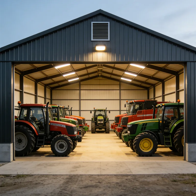 Современное сельское хозяйство требует массивной техники, а традиционные здания часто не справляются с очисткой. В наших стальных навесах для хранения сельскохозяйственной техники используется передовая технология «Clear Span», обеспечивающая беспрепятственную внутреннюю ширину до 60 метров без внутренних колонн. Это обеспечивает максимальную гибкость маневрирования для негабаритных комбайнов и многорядных сеялок. Мы предлагаем настраиваемую высоту карниза (до 12–15 метров) и сверхширокие раздвижные или промышленные рулонные двери, благодаря чему даже ваши самые большие пневмотележки и опрыскиватели смогут легко входить и выходить, снижая риск случайных ударов по конструкции.