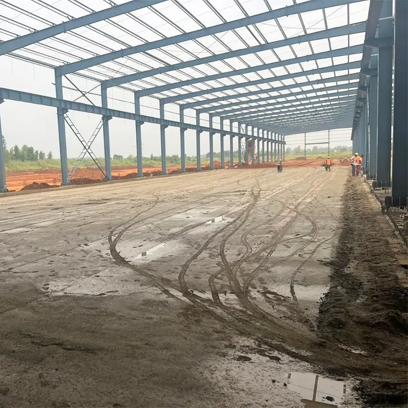 Высококачественная мастерская по изготовлению стальных конструкций портальной рамы, изготовленная из стальных профилей премиум-класса, обеспечивающих стабильную несущую способность, сейсмичность и устойчивость к ветру. Заводская сборка обеспечивает высокую точность, быструю сборку на месте и настраиваемую пространственную планировку, адаптируясь к разнообразным потребностям производства и хранения благодаря гибкому расстоянию между колоннами и четкому дизайну высоты.