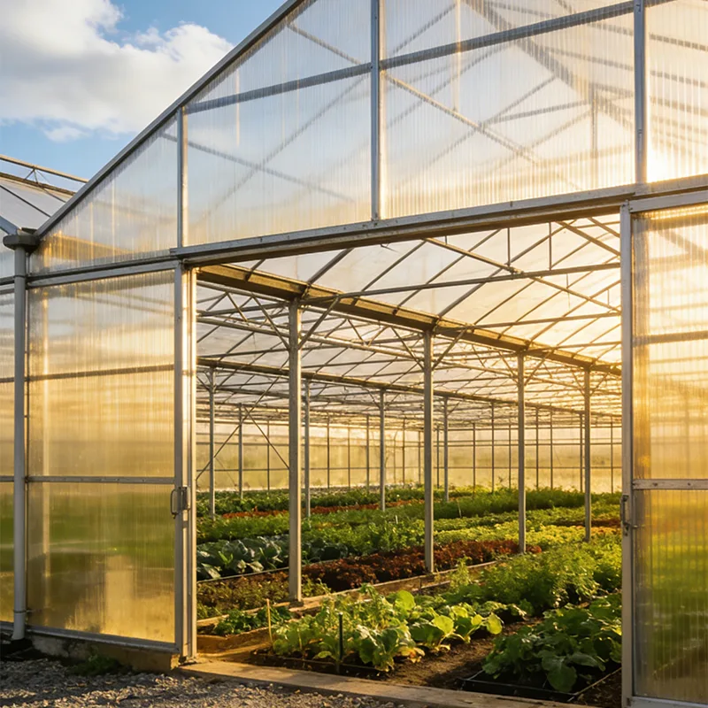 3.Индивидуальные конфигурации: настройте укрывные материалы (лист ПК/пленка/стекло), высоту/пролет рамы, системы вентиляции, оборудование для отопления/охлаждения, системы орошения, затеняющие сетки и дверцы доступа на основе реальных сценариев посадки.