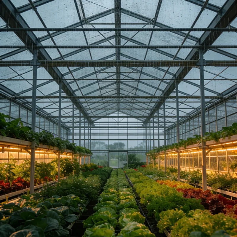 Функциональность лежит в основе нашего дизайна, специально разработанного с учетом потребностей выращивания овощей. Модульная структура навеса обеспечивает гибкую конфигурацию пролетов (4–15 м) и длины (не ограничена модульной конструкцией), что позволяет оптимизировать пространство для различных культур — от листовой зелени, такой как салат и шпинат, которая хорошо растет при густой посадке, до высоких овощей, таких как помидоры и огурцы, которым требуется дополнительный вертикальный зазор. Высота гребня (2,8–5 м) регулируется, что обеспечивает удобство эксплуатации сельскохозяйственного оборудования и достаточную циркуляцию воздуха, а выбор высокопрозрачных покрывающих материалов — устойчивая к ультрафиолетовому излучению полиэтиленовая пленка (светопропускание 85–90 %) или ударопрочный полый лист ПК (светопропускание 80–88 %) — максимально увеличивает фотосинтез, ключевой фактор роста и качества урожая. Кроме того, теплоизоляционные характеристики навеса удерживают ночную температуру на 5 ℃ выше, чем на открытом воздухе, продлевая вегетационный период и позволяя осуществлять посадку в межсезонье, превращая сезонные культуры в круглогодичные потоки доходов.